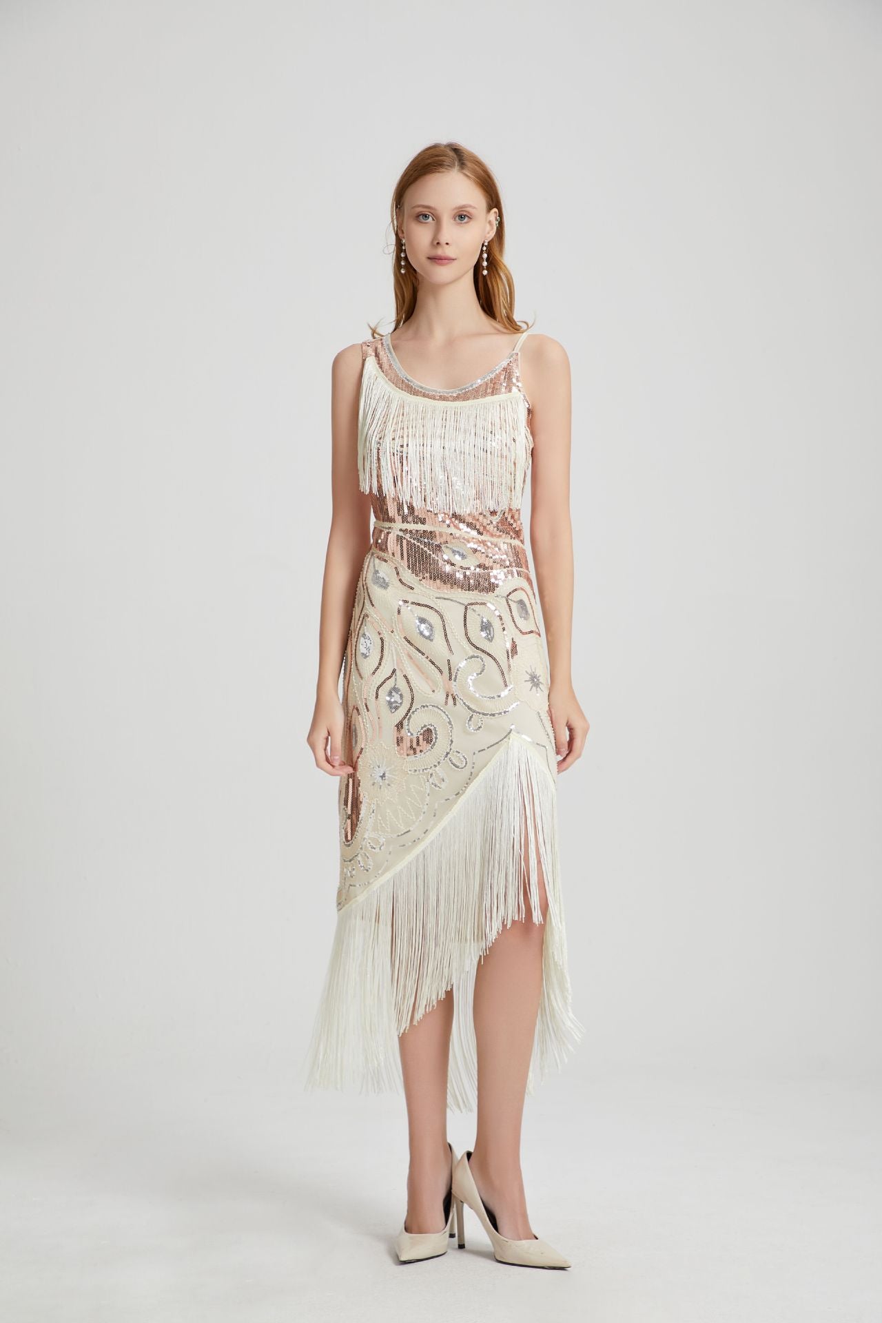 The Luca Sequin Tassel Midi Evening Dress combines glamour and sophistication in a timeless design. The exquisite sequin detailing catches the light, while the chic tassel accents at the bust and hem add movement and allure. This dress is perfect for a cocktail party or evening gala and promises a striking, confident presence.