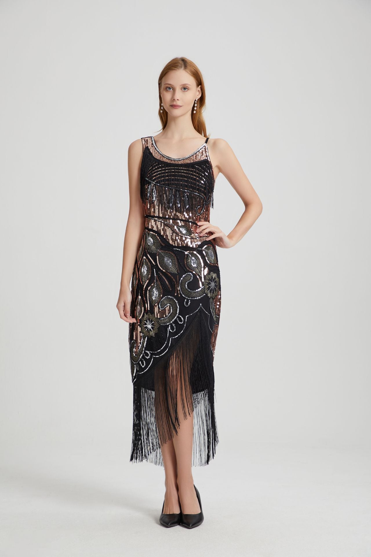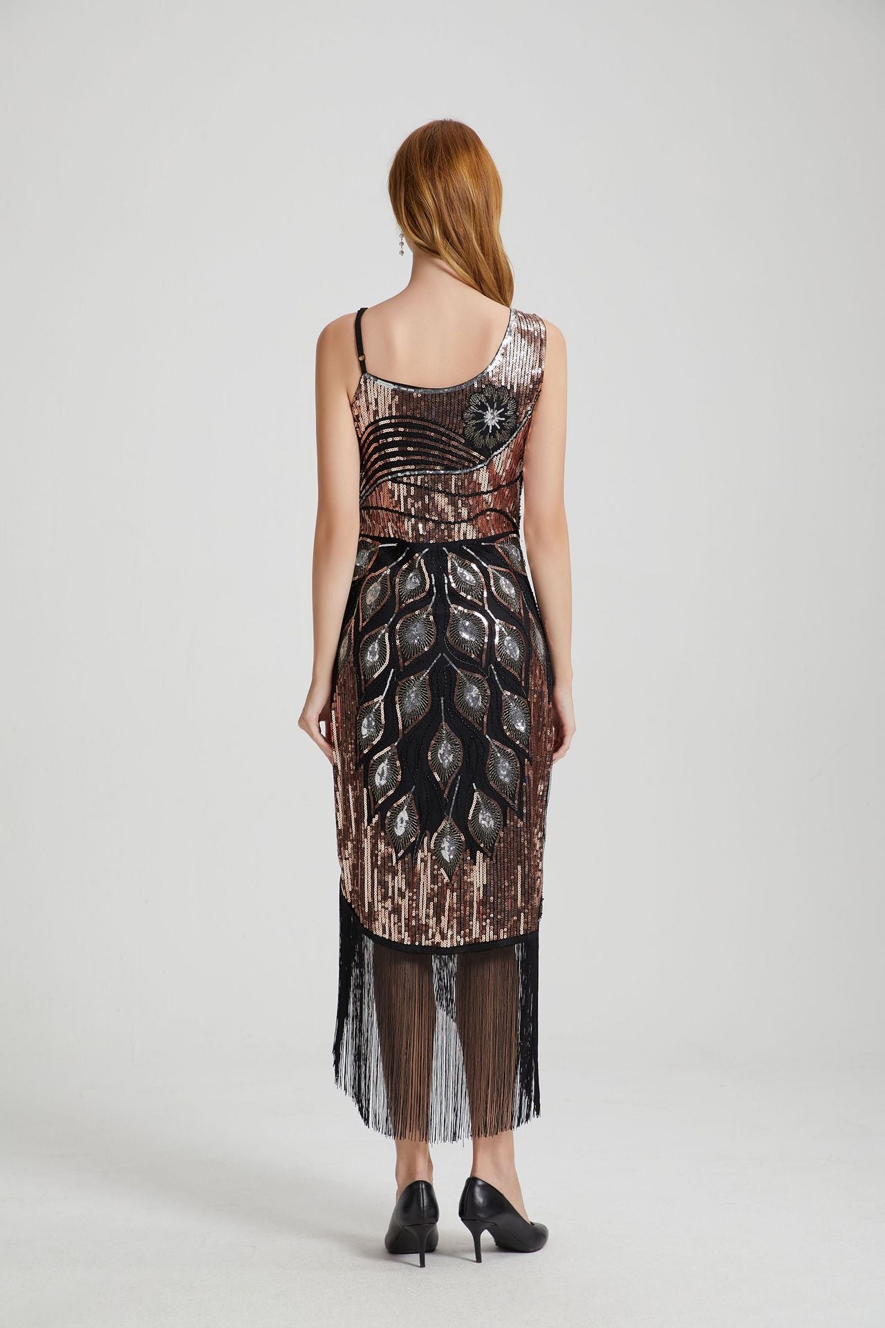 The Luca Sequin Tassel Midi Evening Dress combines glamour and sophistication in a timeless design. The exquisite sequin detailing catches the light, while the chic tassel accents at the bust and hem add movement and allure. This dress is perfect for a cocktail party or evening gala and promises a striking, confident presence.