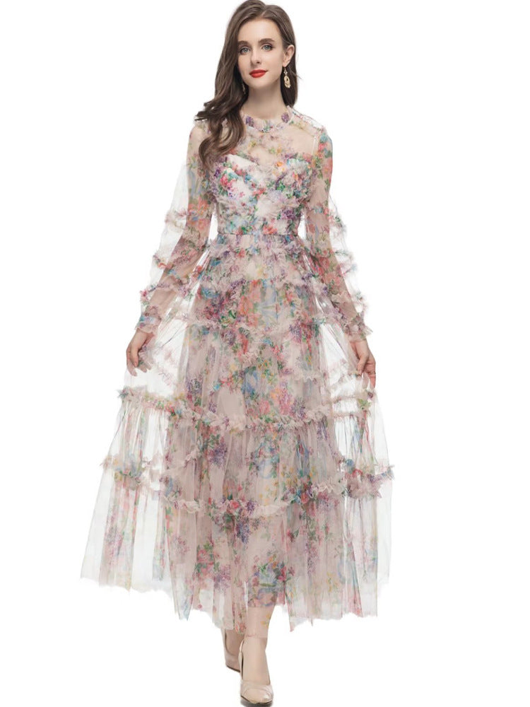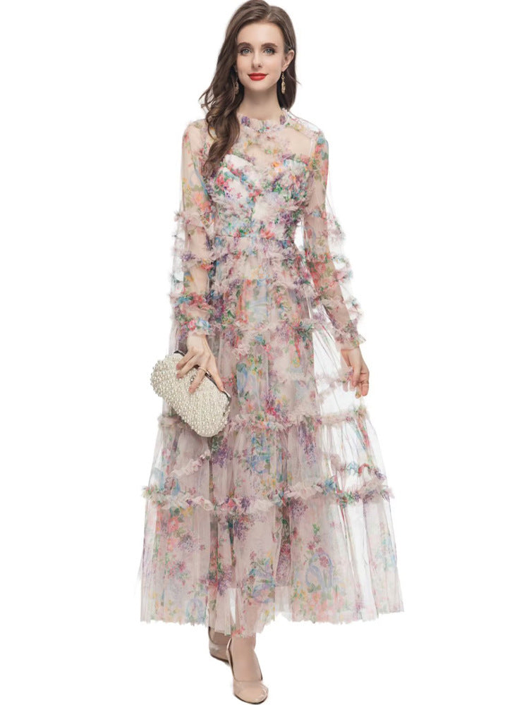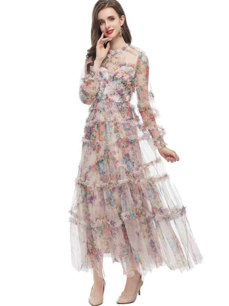 The Oakleigh Floral Long Sleeve Mesh Maxi Dress exudes understated elegance. Delicate floral motifs are subtly woven into sheer mesh fabric, offering a whisper of romance without overpowering. Slim-fit long sleeves and a defined waist create a flattering silhouette, while the pleated maxi skirt adds graceful movement. Lightweight and breathable, this dress balances sophistication with comfort—perfect for brunches, outdoor weddings, or evening events. Designed for the modern woman who values timeless style over fleeting trends.