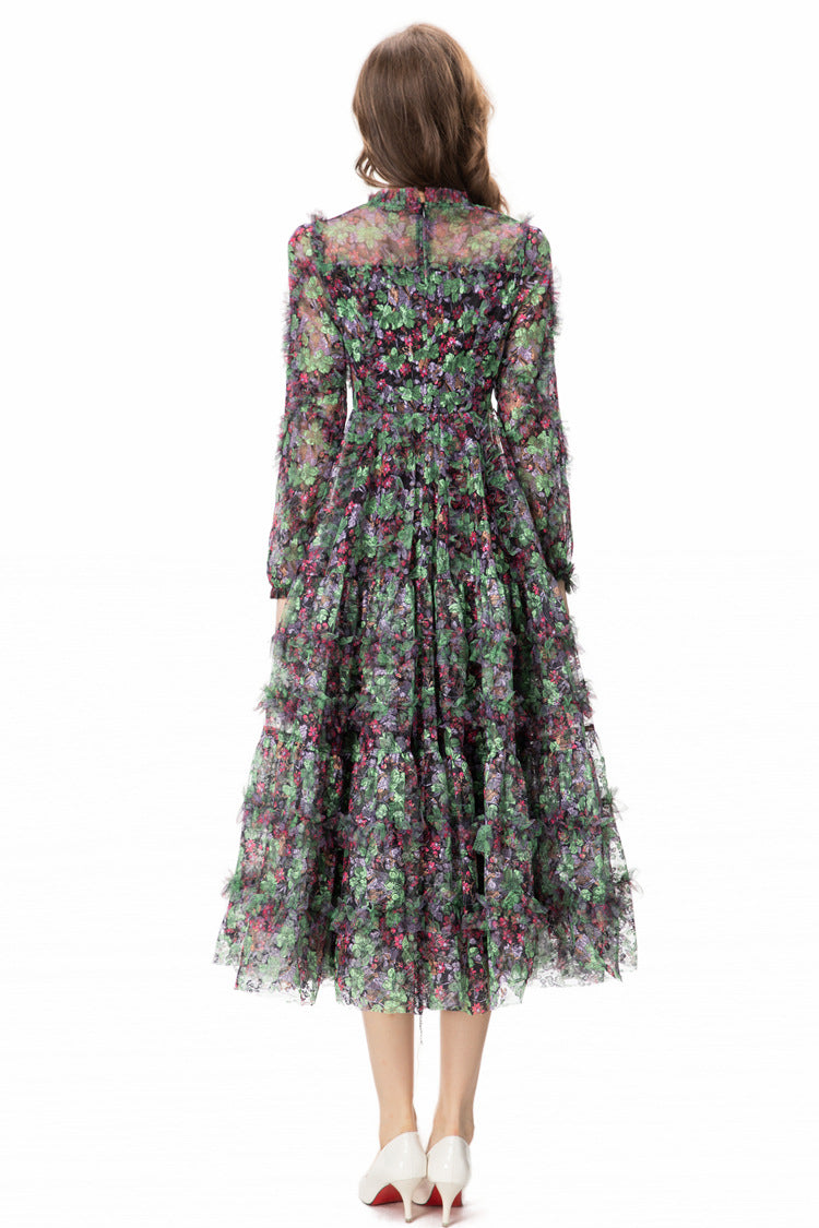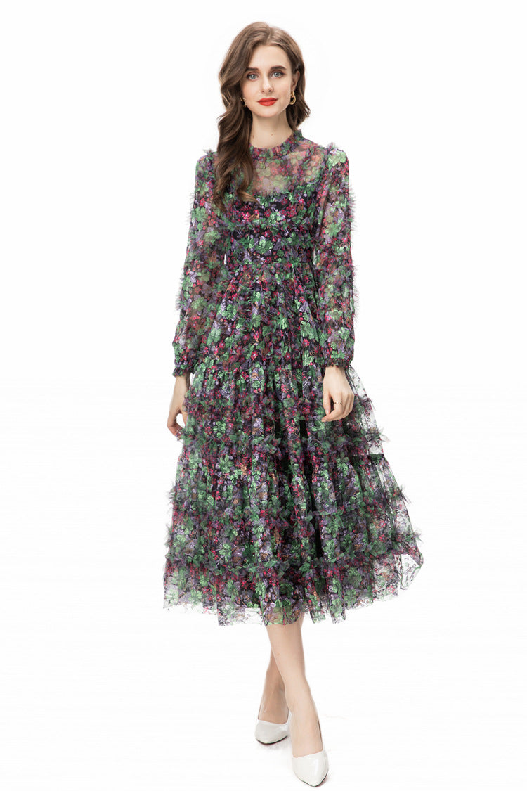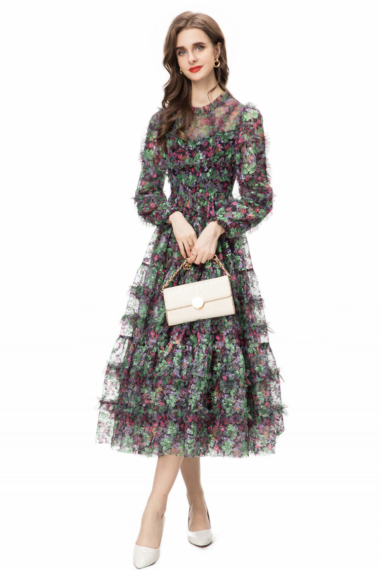 The Riley Long Sleeve Floral Layered Tulle Maxi Dress is a masterpiece of delicate design and timeless beauty. Crafted from soft tulle, the dress features a flattering fitted waist and a voluminous skirt, creating a graceful, flowing silhouette. The floral pattern adds a romantic touch, while the long sleeves offer an elegant balance of coverage and sophistication. Ideal for weddings, parties, or any formal occasion, this dress ensures you stand out with its enchanting charm and effortless elegance.